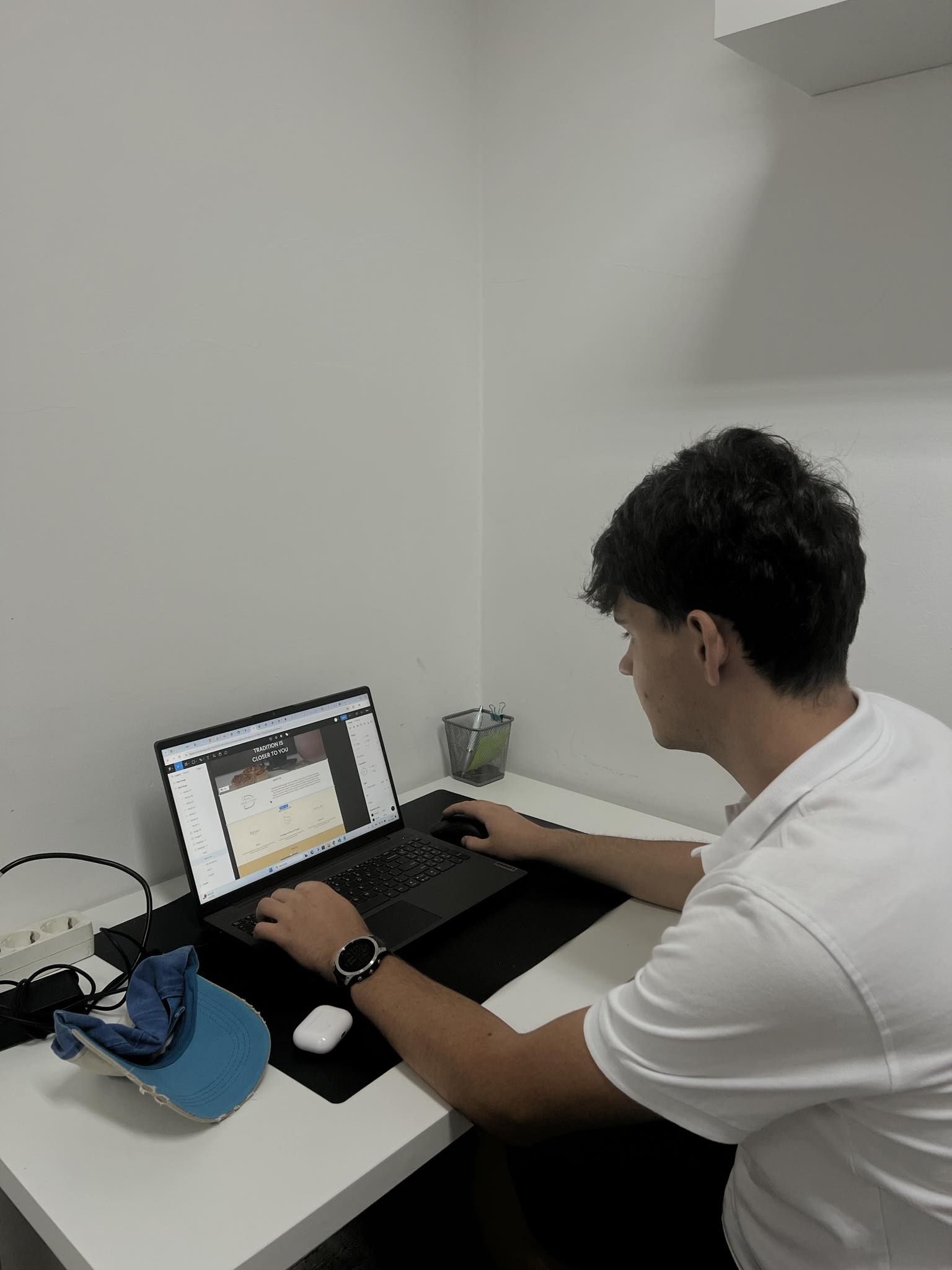 Naszym zadaniem od początku praktyk jest projektowanie designu strony w programie Figma oraz nauka podstaw działania programu WordPress, aby móc pomagać tutejszemu programiście urozmaicać jego projekty. Dodatkowo uczymy się porozumiewać angielskim w warunkach zawodowych, mimo że niewiele osób w firmie posługuje się nim płynnie.